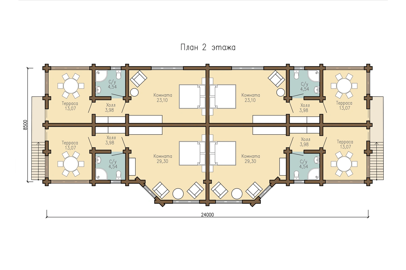 Отель из оцилиндрованного бревна 8 х 24 м №5